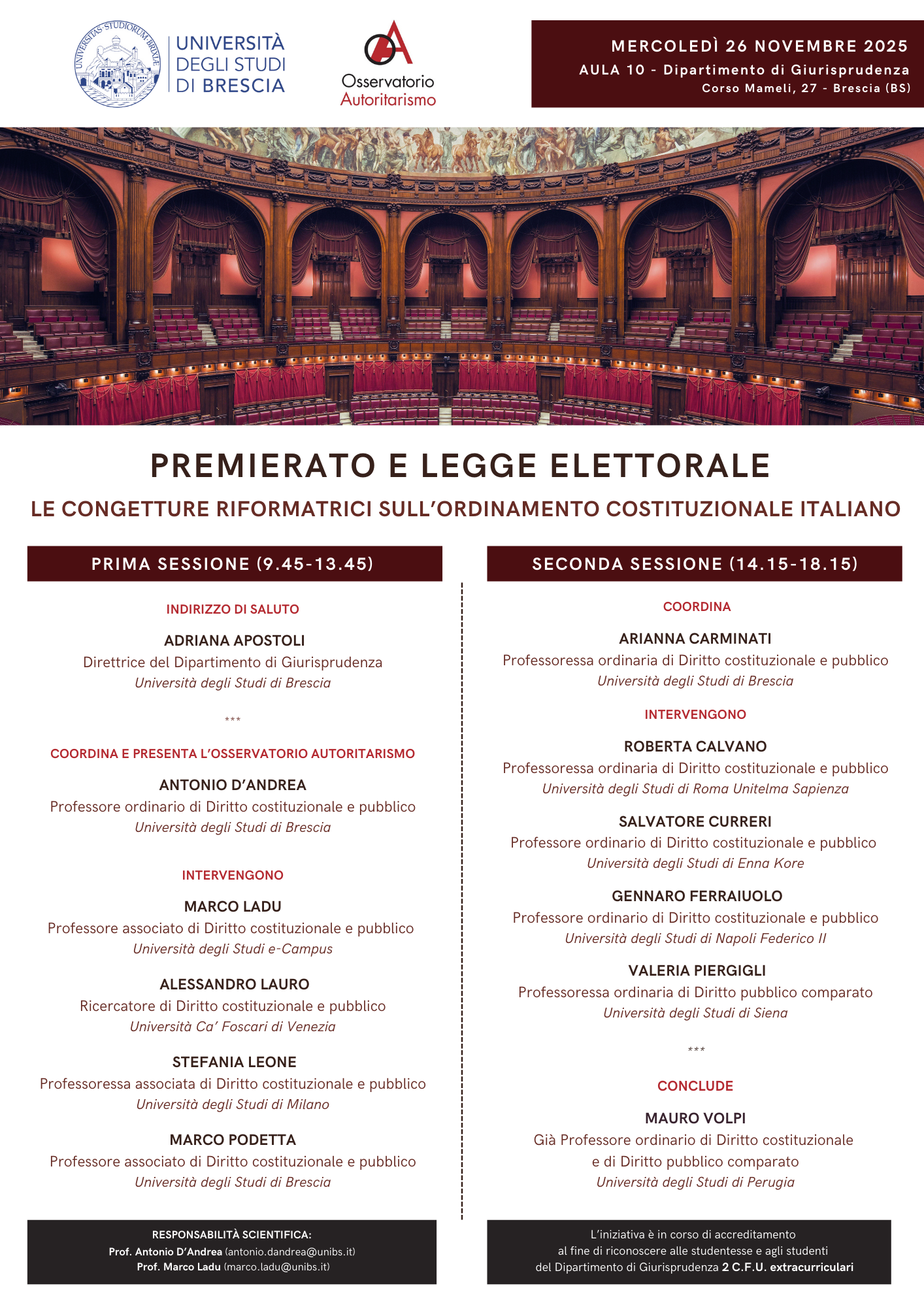 Osservatorio Autoritarismo e Università degli Studi di Brescia promuovono due appuntamenti dedicati a temi che toccano da vicino l’equilibrio democratico del nostro ordinamento. Questo è il primo, che si terrà il 18 novembre. Titolo: “La riforma costituzionale della magistratura: incognite […]