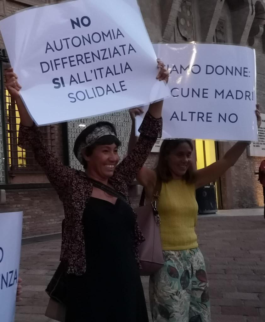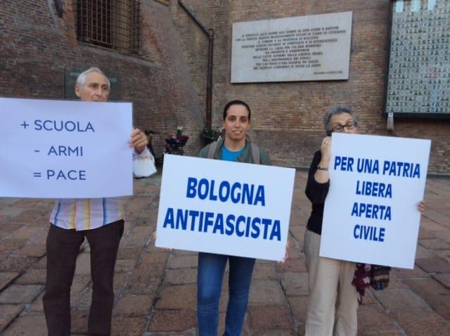 A Bologna, davanti al Sacrario dei caduti, dal 13 settembre fino al voto, si tiene un presidio dalle 18,30 alle 20. Sono persone, per lo più donne, orientate a sinistra che, senza simboli, espongono cartelli per dichiarare in cosa credono. Tra loro c’è anche Daniela Ciullo del Circolo Leg di Bologna.