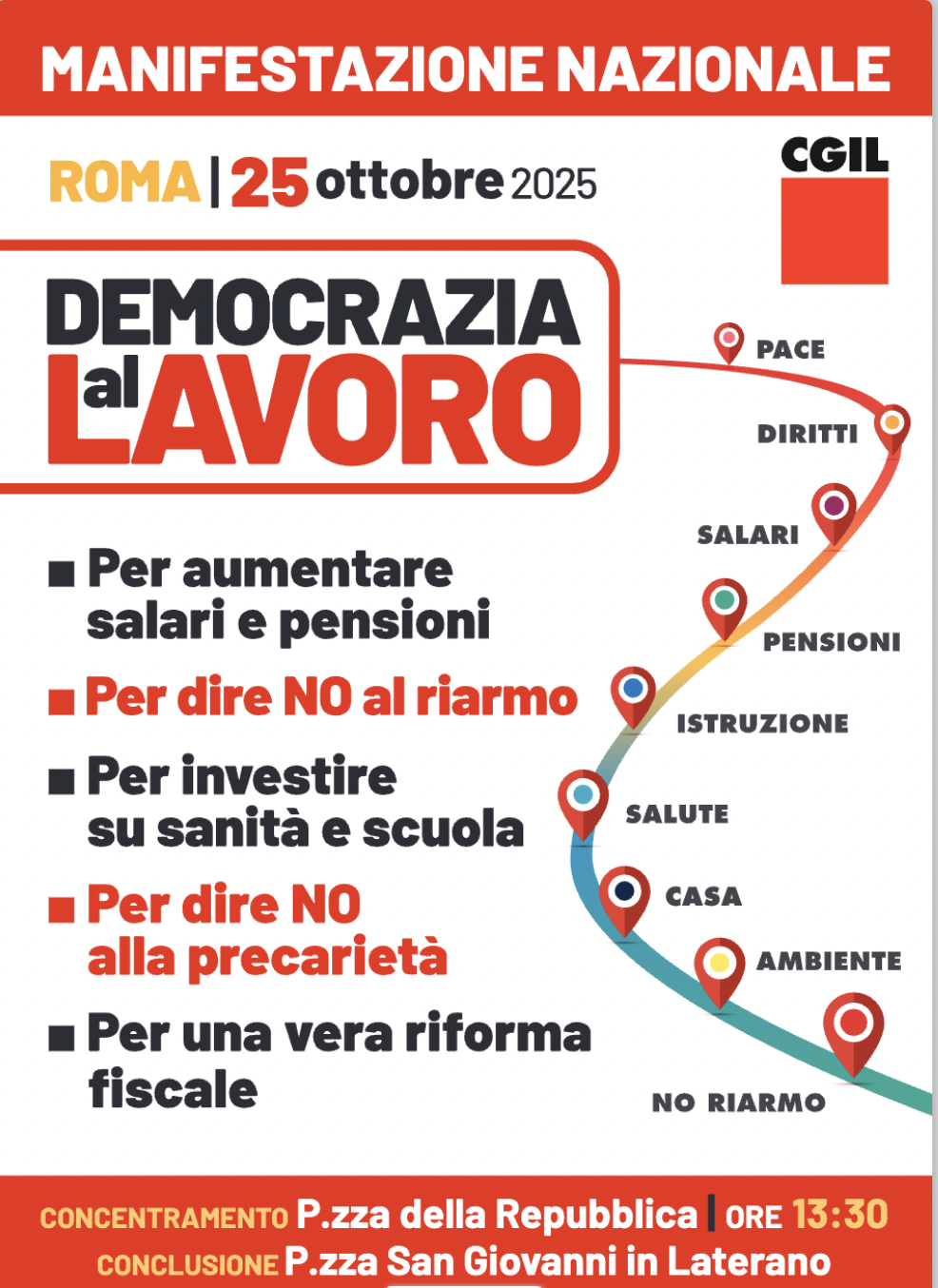 Per questo saremo in piazza con la Cgil, il 25 ottobre, e invitiamo a una grande e consapevole partecipazione.