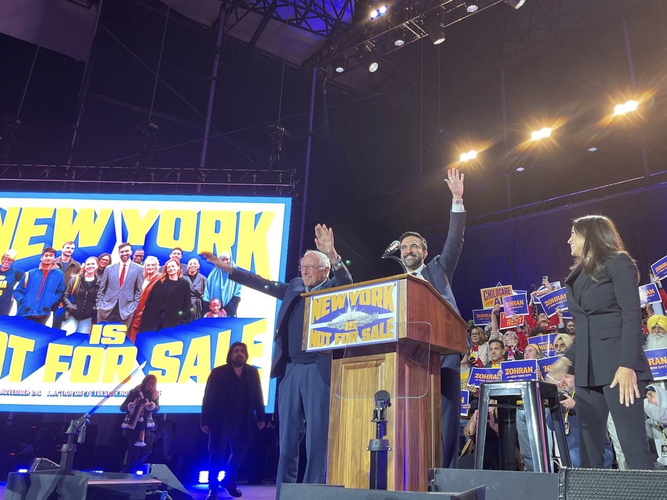 Quanto a Sanders, oltre a sfoderare il consueto repertorio sulle sproporzionate diseguaglianze sociali e disfunzioni di un sistema che, gestito da una spietata oligarchia bipartisan, affligge milioni e milioni di abitanti, ha sottolineato l’importanza e l’eccezionalità di questa particolare elezione newyorkese: «Il motivo per cui questa campagna ha generato così tanto interesse ed eccitazione in tutto il mondo è il fatto che la gente vuole conoscere la risposta a questa semplice domanda: nel 2025, in una situazione in cui le persone al comando non hanno mai avuto così tanto potere economico e politico, è possibile per la gente comune, appartenente alla classe lavoratrice, unirsi e sconfiggere quegli oligarchi? Avete dannatamente ragione, possiamo farcela», ha concluso Sanders, chiamando direttamente in causa la platea, e ha aggiunto: «La vittoria a New York darà speranza e ispirazione non solo al nostro intero Paese, ma al mondo intero. Ecco cosa c’è in ballo, qui».