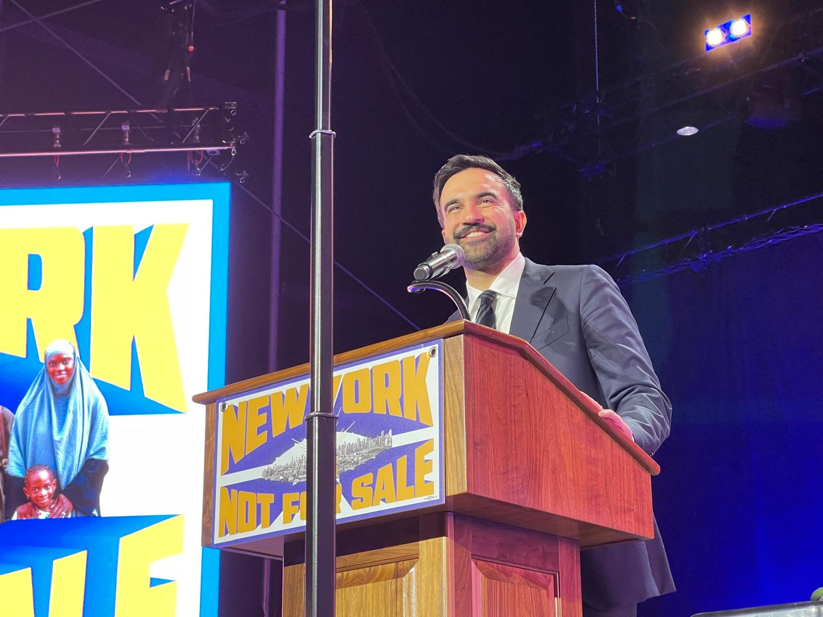 «Credo che questa città sia come l’universo, in continua espansione», ha detto. «Ci meritiamo un’amministrazione ambiziosa quanto i lavoratori newyorkesi che rendono questa città la più grandiosa del mondo. Non possiamo aspettare che lo faccia qualcun altro. Non possiamo permetterci questo lusso, perché aspettare troppo spesso significa continuare a dare fiducia a coloro che ci hanno portato fino al punto disastroso in cui ci troviamo. Il 4 novembre, riporteremo la nostra città sulla traiettoria che le appartiene. E così facendo risponderemo a una domanda che tormenta la nostra nazione fin dagli albori della sua fondazione. A chi è consentito essere libero? Alcuni conoscono la risposta, senza esitazione: sono gli oligarchi che hanno accumulato enormi ricchezze sfruttando le persone che cominciano a lavorare prima che le luci dell’alba irrompano all’orizzonte, e finiscono ore dopo che il colore si è ritirato dal cielo. Sono i robber barons d’America, convinti che i loro soldi diano loro il diritto di contare molto più del resto di noi. Non parlo solo dei Bill Ackman e dei Ken Langone del mondo. Parlo di persone i cui nomi non ci sono familiari, ma che non si fanno scrupolo di versare ai super PacAC [le organizzazioni cui è consentito raccogliere fondi illimitati per la campagna elettorale, ndr] più soldi di quanti ne dovrebbero mai pagare in tasse, persone che esultano quando quei comitati inondano le nostre televisioni di spot con la scritta ‘jihad globale’ impressa sulla mia faccia».