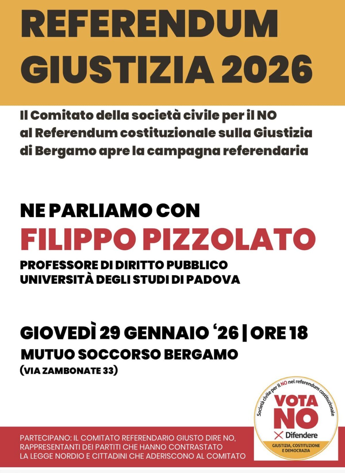 Il 21 gennaio 2026, alle ore 11, allo Spazio della Fondazione Serughetti La Porta, è stata presentata la costituzione, anche a Bergamo, del Comitato per il No al referendum costituzionale sulla Magistratura, che aderisce al Comitato nazionale della società civile…