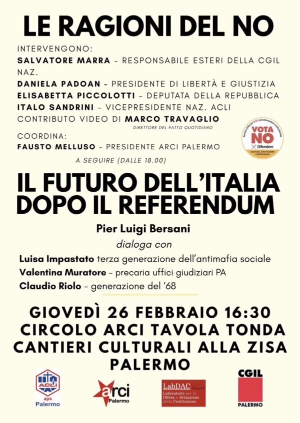 26 febbraio, ore 16.30, Palermo, Le ragioni del No,