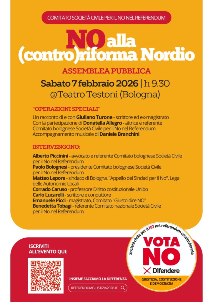 Per sostenere la campagna referendaria, puoi versare un contributo sul conto corrente intestato a: A.N.P.I. Comitato provinciale di Bologna ETS, codice Iban IT26S0538702406000035268168, con la causale “contributo a sostegno del Comitato della società civile per il NO al referendum costituzionale sulla giustizia”.
